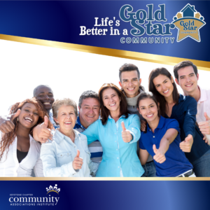 The CAI Gold Star Community® Program recognizes associations that are committed to strong governance, financial                                   responsibility, community engagement, and enhancing quality of life for residents. Participating in the Gold Star program is                         a great way to benchmark your policies and procedures against industry standards, identify opportunities for improvement, and                                                                                  demonstrate your community’s commitment to best practices.